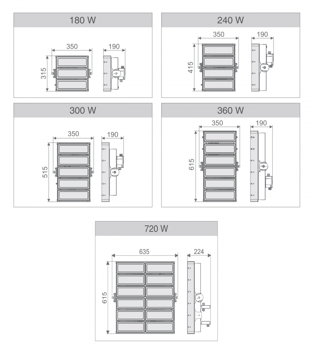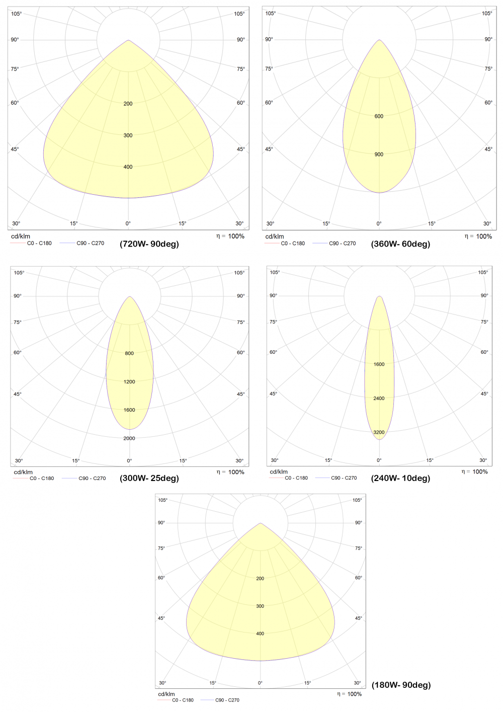 نورافکن ماتریس خانواده چراغ ماتریس جهت کاربری نورافکن، تونلی، Highbay و برج های مرتفع در نظر گرفته شده است .توان 720Wو 360W منحنی فقط جهت کاربری نورافکن و برج های مرتفع میباشد…قابلیت ترووایرینگ دارای درجه حفاظت IP66 و حفاظت در برابر برخورد اجسام سخت IK07 قابلیت انعطاف در طراحی به واسطه مدرج بودن نصب ماژول ها و زوایای مختلف لنز ها بازده نوری و طول عمر بالا منبع نوری استفاده از لنز هایی با جنس پلی کربنات که مقاومت بالا در برابر حرارت و اشعه uv دارد منبع تغذیه استاندارد با قابلیت کنترل دقیق جریان، ضریب توان بالا و اعوجاج هارمونیکی کم عدم تابش اشعه ماوراء بنفش و