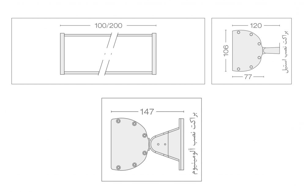 • امکان تنظيم دقيق زاويه نصب چراغ توسط براکت نصب استيل